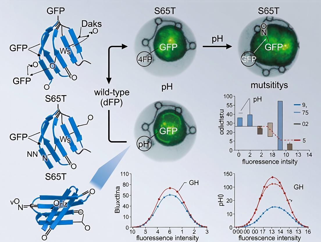 Q1: My GFP-S65T variant shows unexpectedly low fluorescence when expressed in secretory pathway studies. What could be the issue? A: The S65T mutation increases the folding efficiency and fluorescence intensity of GFP but does not inherently confer strong resistance to acidic pH. If your experiment involves the Golgi apparatus (pH ~6.0-6.7) or secretory vesicles, the fluorescence loss is likely due to protonation. The S65T mutation on its own is still somewhat pH-sensitive. Consider combining it with genuinely pH-resistant mutations like T203I or S147E for these compartments.