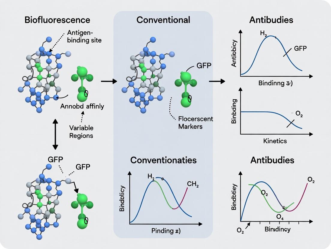 This article provides a detailed technical analysis comparing the affinity characteristics of GFP-specific nanobodies with conventional antibodies. We explore the fundamental structural differences underpinning binding kinetics, discuss key methodological approaches for accurate affinity determination (e.g., SPR, BLI), address common troubleshooting and optimization strategies for nanobody validation, and present a head-to-head comparison of performance metrics in critical applications like super-resolution imaging, in vivo tracking, and diagnostic assays. Tailored for researchers and drug development professionals, this guide synthesizes current data to inform experimental design and therapeutic platform selection.