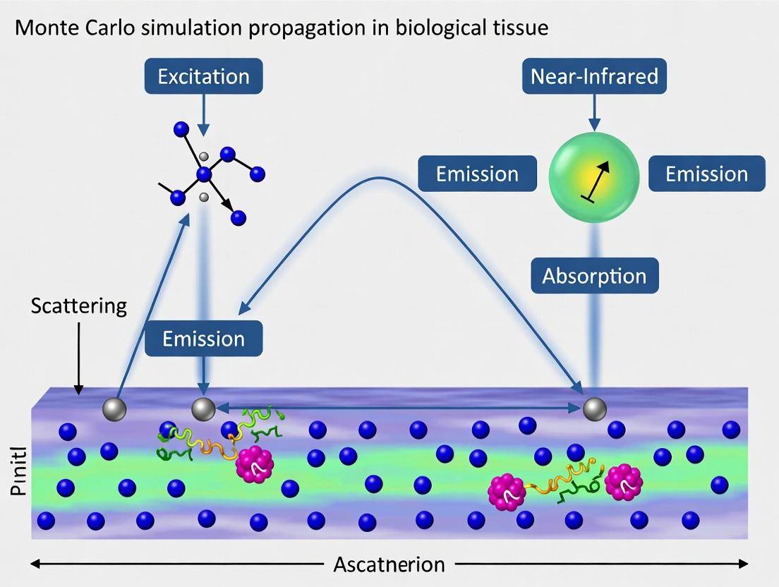 Monte Carlo simulation remains an indispensable, rigorous tool for modeling NIR photon propagation in complex biological media. This guide has underscored that a successful implementation hinges on a solid grasp of foundational photon physics, a meticulous methodological approach to code development, proactive strategies to overcome computational limitations, and rigorous validation against established benchmarks. As the field advances, the integration of AI for parameter optimization and real-time simulation, coupled with ever-increasing GPU power, promises to transform Monte Carlo methods from a research tool into a potential component of clinical planning systems. For researchers in drug development and biomedical optics, mastering these simulations is key to unlocking deeper insights into tissue physiology, optimizing light-based therapies, and developing the next generation of non-invasive diagnostic devices. The future lies in creating more accessible, high-fidelity models that can seamlessly integrate with experimental data to accelerate translational research.