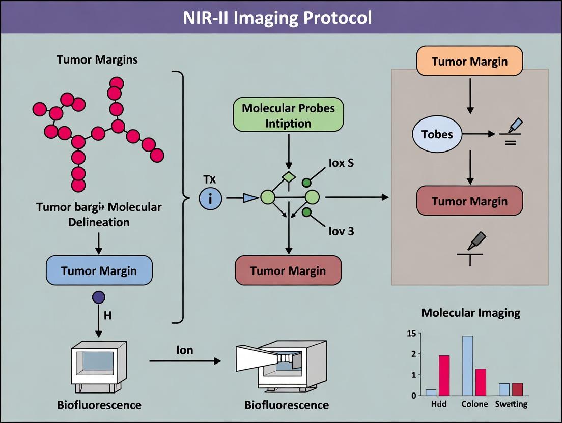 NIR-II fluorescence imaging represents a transformative tool for precise tumor margin delineation, offering significant advantages in penetration depth, spatial resolution, and signal-to-background ratio over traditional NIR-I. A standardized protocol, as outlined, is critical for generating robust, reproducible data across research laboratories. Key takeaways include the necessity of careful contrast agent selection and dosing, systematic optimization of imaging parameters to mitigate artifacts, and rigorous validation against histopathology. Future directions must focus on the clinical translation of biocompatible NIR-II agents, the integration of NIR-II imaging with robotic surgical systems, and the development of multiplexed imaging protocols that combine margin delineation with therapeutic response monitoring. Widespread adoption of this methodology has the potential to redefine surgical oncology research and pave the way for improved oncological outcomes.