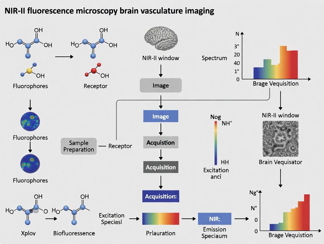 NIR-II fluorescence microscopy has unequivocally established itself as a paradigm-shifting tool for brain vasculature research, offering unparalleled combinations of depth, resolution, and contrast for in vivo imaging. By mastering its foundational principles (Intent 1), implementing robust methodological pipelines (Intent 2), and applying systematic optimization (Intent 3), researchers can extract quantitative, high-fidelity data on the cerebrovascular system in its native physiological state. Validation against gold-standard techniques (Intent 4) confirms its superior performance for deep-tissue microvascular imaging and real-time hemodynamic tracking. The future trajectory points toward the clinical translation of targeted NIR-II probes for intraoperative guidance, the development of high-speed, multiplexed imaging systems for functional connectomics, and the integration of artificial intelligence for automated vascular phenotyping. For neuroscientists and drug developers, mastering NIR-II microscopy is now essential for unraveling the vascular basis of neurological disorders and accelerating the development of next-generation therapeutics.