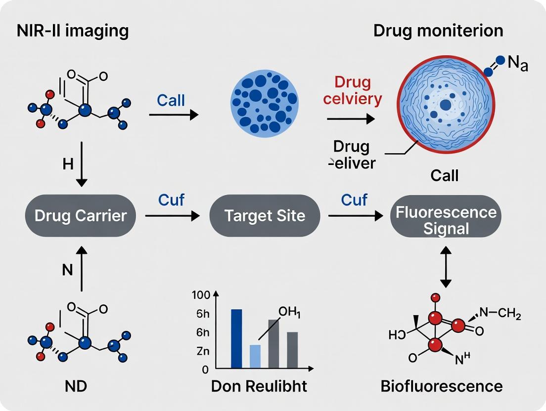 | NIR-II Fluorescent Probe | Labels drug carriers or targets vasculature for deep-tissue, high-resolution imaging. | IRDye 800CW, IR-12N3, Ag2S quantum dots, conjugated to drug/nanocarrier. |