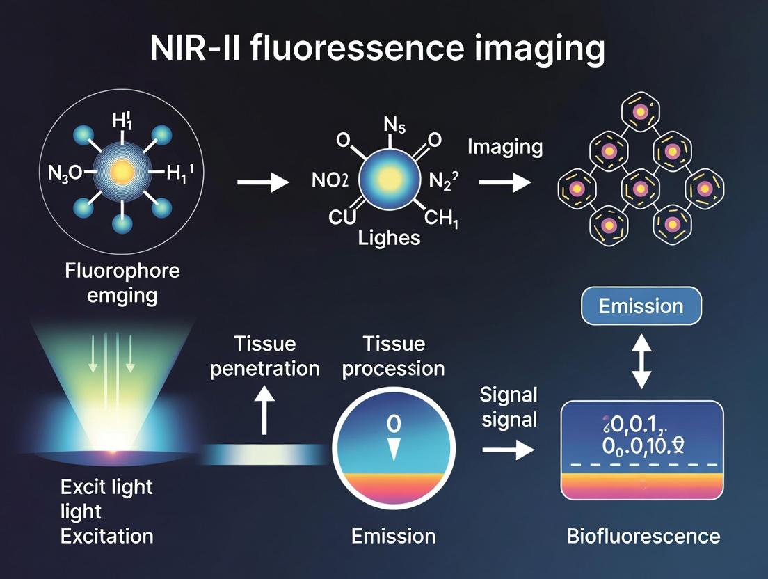 Biological tissue is a highly heterogeneous, turbid medium. The depth and clarity of optical imaging are primarily governed by two phenomena: absorption (loss of photon energy to tissue components) and scattering (deflection of photons from their original path). The central thesis is that by shifting excitation and emission to the NIR-II window, both scattering and absorption coefficients are significantly reduced, leading to a dramatic increase in penetration depth, spatial resolution, and signal-to-background ratio.